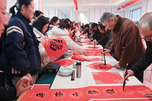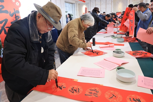 隨著蛇年春節(jié)腳步臨近,活動(dòng)期間還舉辦了“文化惠民”活動(dòng),江蘇省當(dāng)代藝術(shù)創(chuàng)作研究會(huì)的文化學(xué)者揮毫潑墨,寫(xiě)對(duì)聯(lián)、送福字,為大家送來(lái)了新年的祝福。